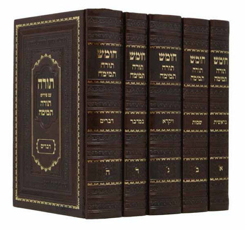 תורה תמימה על חומש וה' מגילות, מסודר מחדש, בכריכת לוקס. 23½ x 15½ cm
