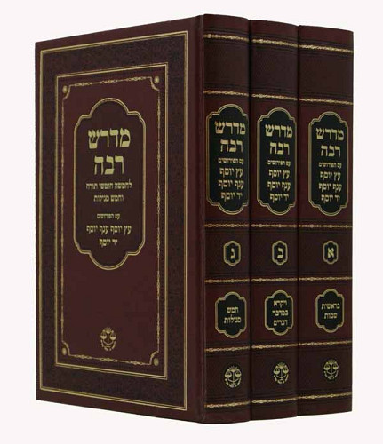 מדרש רבה עם פי' עץ יוסף וענף יוסף מהדורה מפוארת ומנוקדת ב-3 כרכים. 25½ x 18 cm