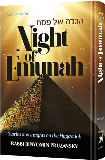 Stories & Insights Prepare for a journey... Out of servitude... Into emunah... This is the night. Pesach is called the holiday of emunah, of faith. As we sit at our Seder table speaking of the wonders and miracles of the Exodus, we ignite a flame of emunah that will burn brightly throughout the year. Rabbi Binyomin Pruzansky is a brilliant storyteller, and in this unusual Haggadah he uses that talent to bring the story of Yetziyas Mitzrayim into our stories - our lives, challenges, hopes and accomplishments. And, especially, into our emunah. In addition to fascinating Torah insights, Rabbi Pruzansky offers story after story that highlights the emunah of the Jews, both famous personalities and simple people with rock-solid faith. He shares "kriyas Yam Suf" stories - when a person feels there is no way to go forward and Hashem miraculously brings him to where he wants to be. We will find emunah in a dangerous Arab village and on Brooklyn's Ocean Parkway. In the Soviet army and a luxury Pesach hotel. In traffic jams and basketball courts. We will explore the faith of our ancestors in Egypt, and the faith of people just like us. We will hear great stories -- and we will find ourselves strengthened. Haggadah shel Pesach: Night of Emunah pulsates with the energy of faith and hope; perfect for the holiday of emunah -- and just what we need to make our Seder table vibrant and meaningful on this night of renewed faith and trust.
